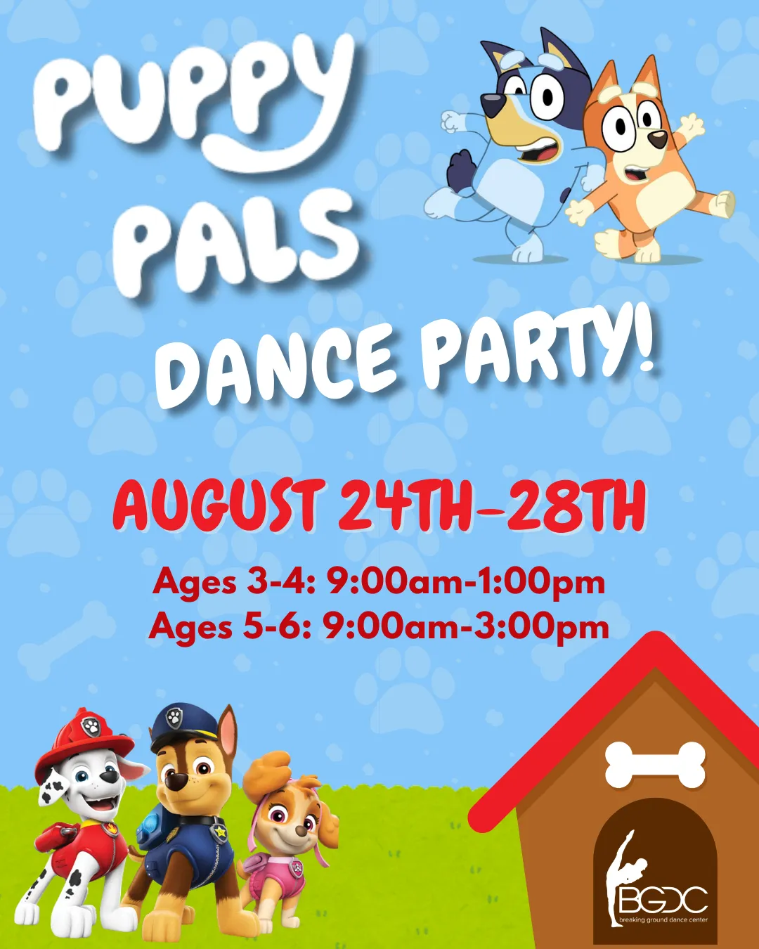Your littlest dancers will jump into a playful world inspired by their favorite Puppy Pals! Play along with Bluey, Paw Patrol, and more! Join the pack for paw-some adventures and tail-wagging excitement!