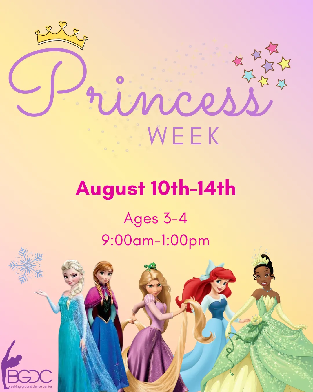 Royalty awaits for Princess Week at BG! Inspired by the stories of beloved princesses like Elsa & Tiana, kids will enjoy magical games, enchanting activities, and letting their imaginations reign supreme.